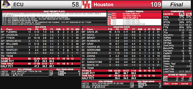 Final stats: Houston Cougars 109, ECU Pirates 58