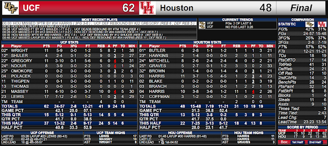 Final box score: UCF 62, Houston 48 |