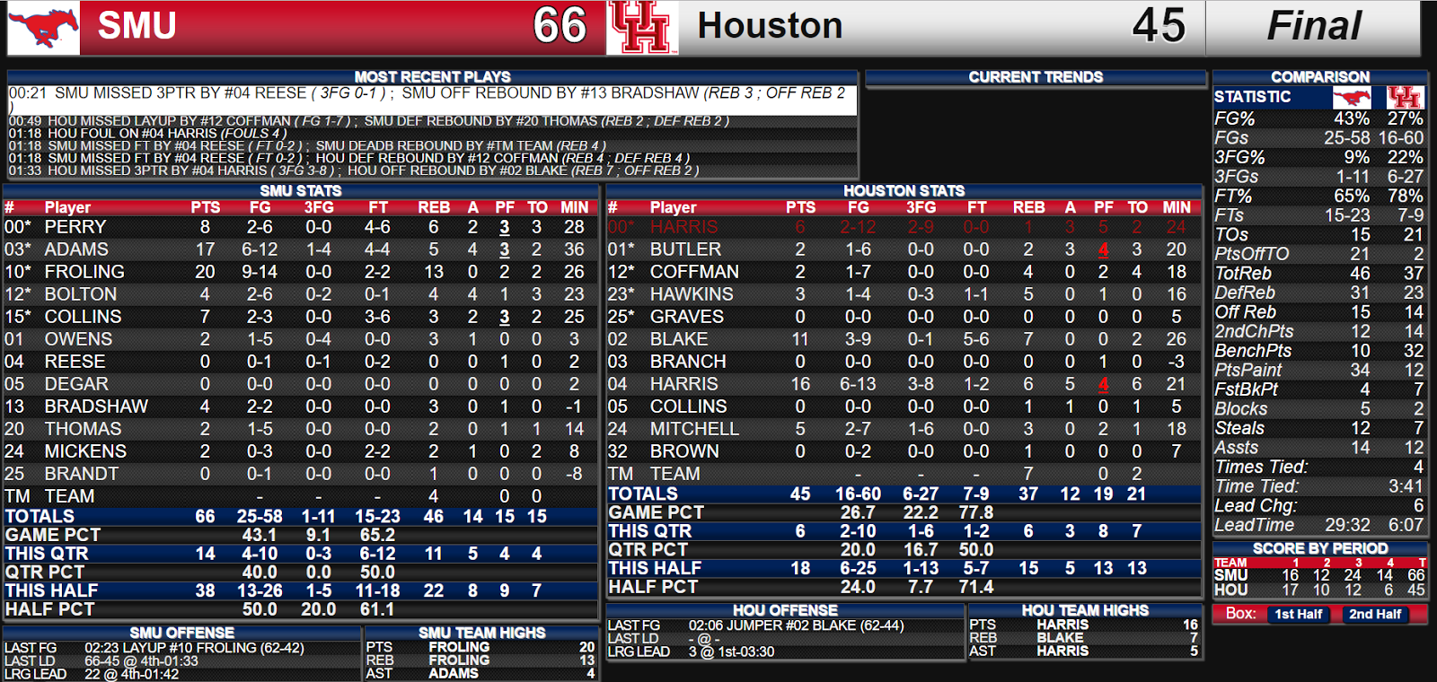 Coogs 45, SMU 66 |