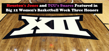 TCU's Marta Suarez (player) and Houston's Jade Jones (freshman) received Big 12 women's basketball awards for the third week of the 2025-26 season. BU's Taliah Scott, UC's Caliyah DeVillasee and ISU's Audi Crooks join the pair on the Big 12 Starting Five, which highlights strong performances from around the league.